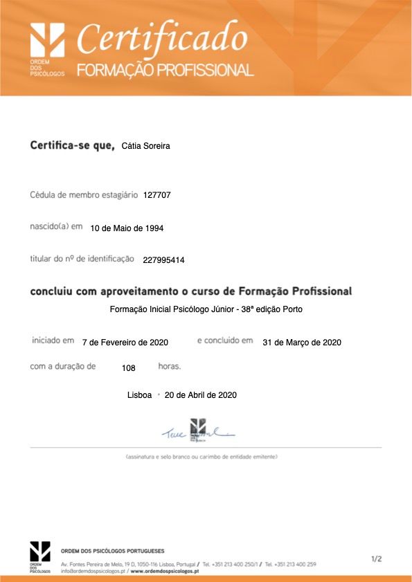 Procurei acompanhamento psicológico num momento desafiante e encontrei na Drª Cátia uma profissional dedicada, competente e sempre disponível. As consultas foram conduzidas com grande rigor, empatia e ética, permitindo-me desenvolver novas estratégias para lidar com os meus desafios pessoais.