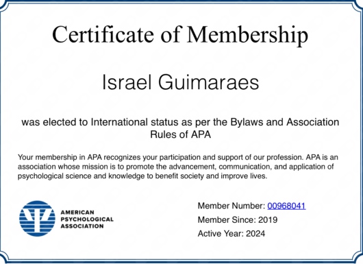 Membro filiado nº 968041 da APA (American psychological Association);